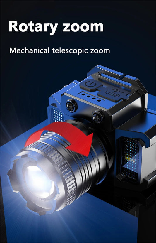 Zoomable LED Headlamp, Micro USB, Rechargeable, Powerful COB Headlight, Waterproof