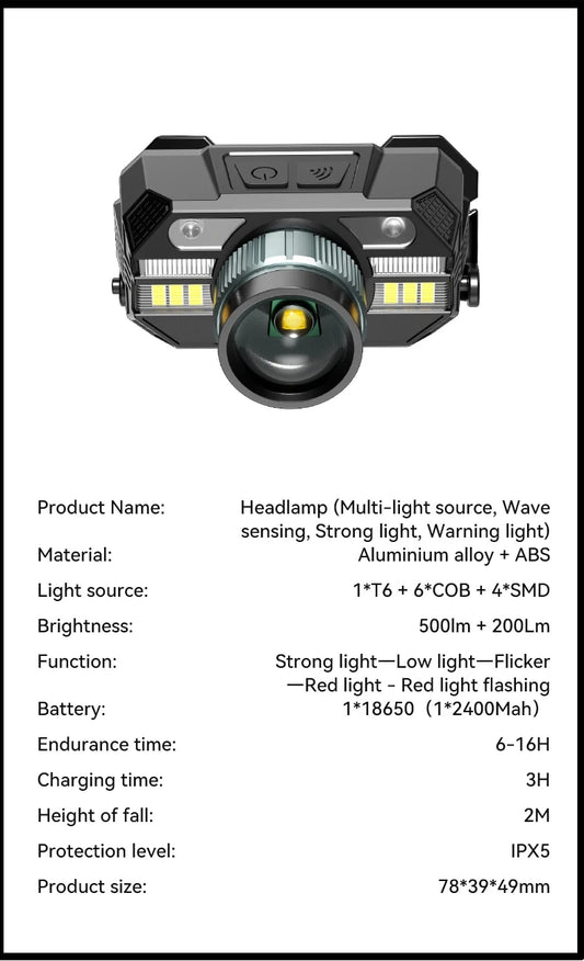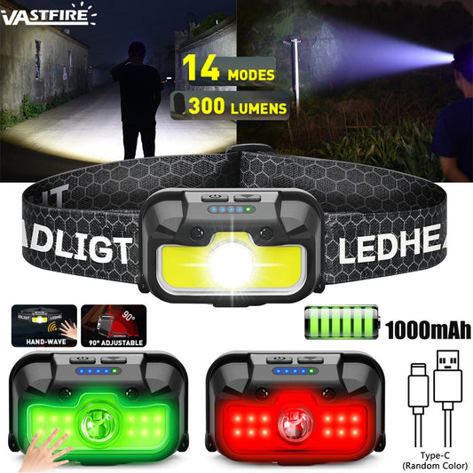 Powerful LED Headlamp Motion Sensor Headlight 18650 Rechargeable COB Head Flashlights High Power Head Lamp Fishing Headlight