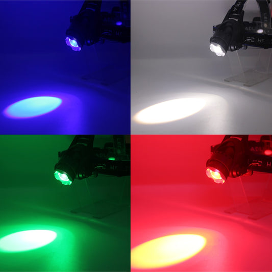 HL 01-13 Red/Green/Blue/White Light 4 In 1 Adjustable Zoomable Focus LED Headlight, ideal for Fishing...