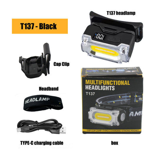 COB LED Headlamp Induction Head Lamp Built-in Battery USB Rechargeable Head Flashlight Outdoor Camping Fishing Sensor Headlight