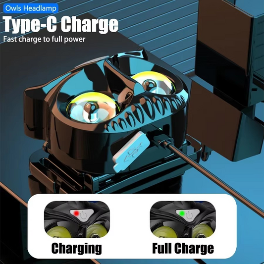 Owl Headlamp Waterproof USB Rechargeable Headlight with Hook and Magnetic for Adults Children Running Fishing Riding Camping
