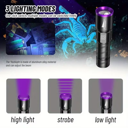 395nm UV Flashlight Blacklight Zoomable USB Rechargeable UV Light Ultraviolet Flashlight for Pet Urine Detection Resin Curing